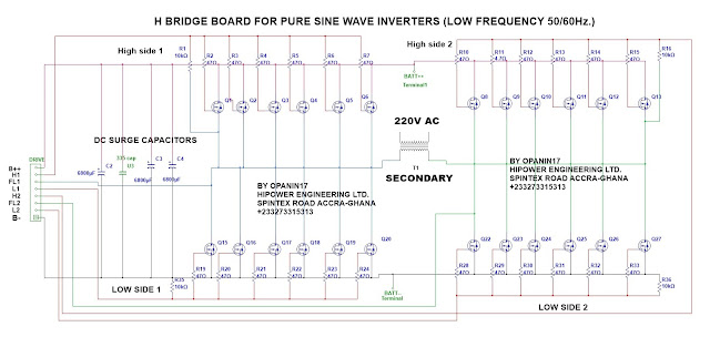 The mosfet bridge circuit for pure sine inverters is also know as H-bridge or Power amplifying Stage. Click below to read more about mosfet bridge circuit and how it works.