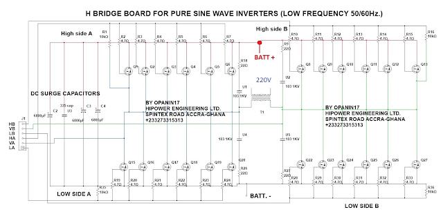 H bridge inverters are best for me especially when it comes to their way of charging your batteries until float level. The circuit below is an H bridge circuit which can handle 1000W to 3000W 12V, 1000W to 4000W 24V, 1000W to 5000W 48V.